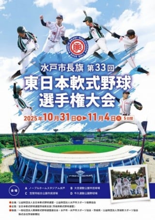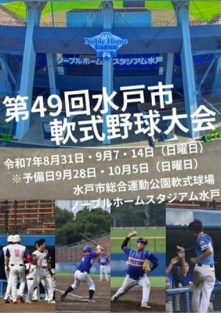一般軟式野球チームの出場チーム募集。水戸市のほか,広域市町村の笠間市・ひたちなか市・那珂市・小美玉市・茨城町・大洗町・城里町・東海村からも参加チームを募ります。